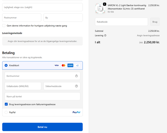 - Vælg kreditkortbetaling på betalingssiden.